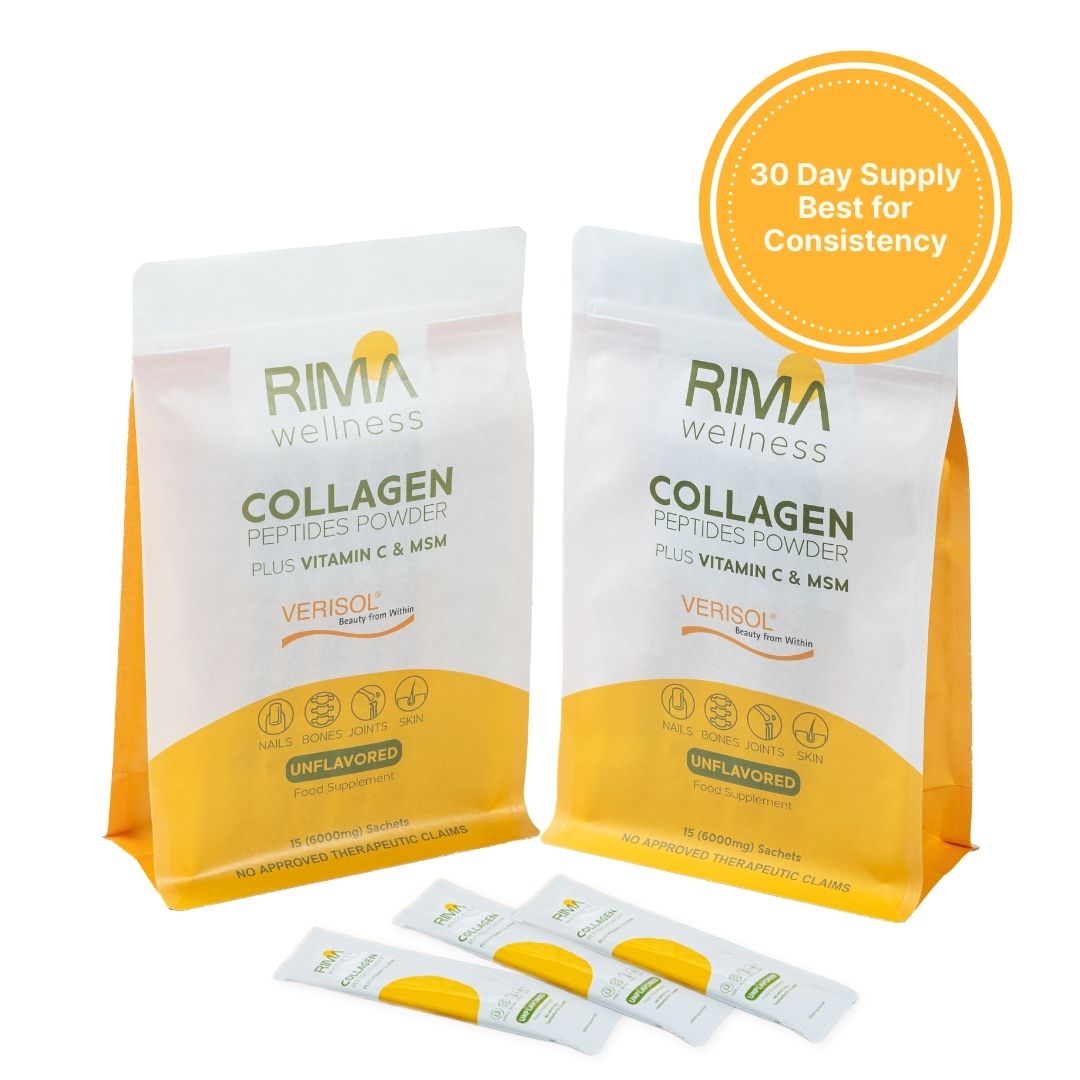 Rima Wellness uses Verisol® Collagen, a clinically tested and patented collagen peptide. Combined with 10 premium ingredients like Vitamin C and MSM, it offers results you can feel and see. - How do I use Rima Wellness Collagen in my daily routine?